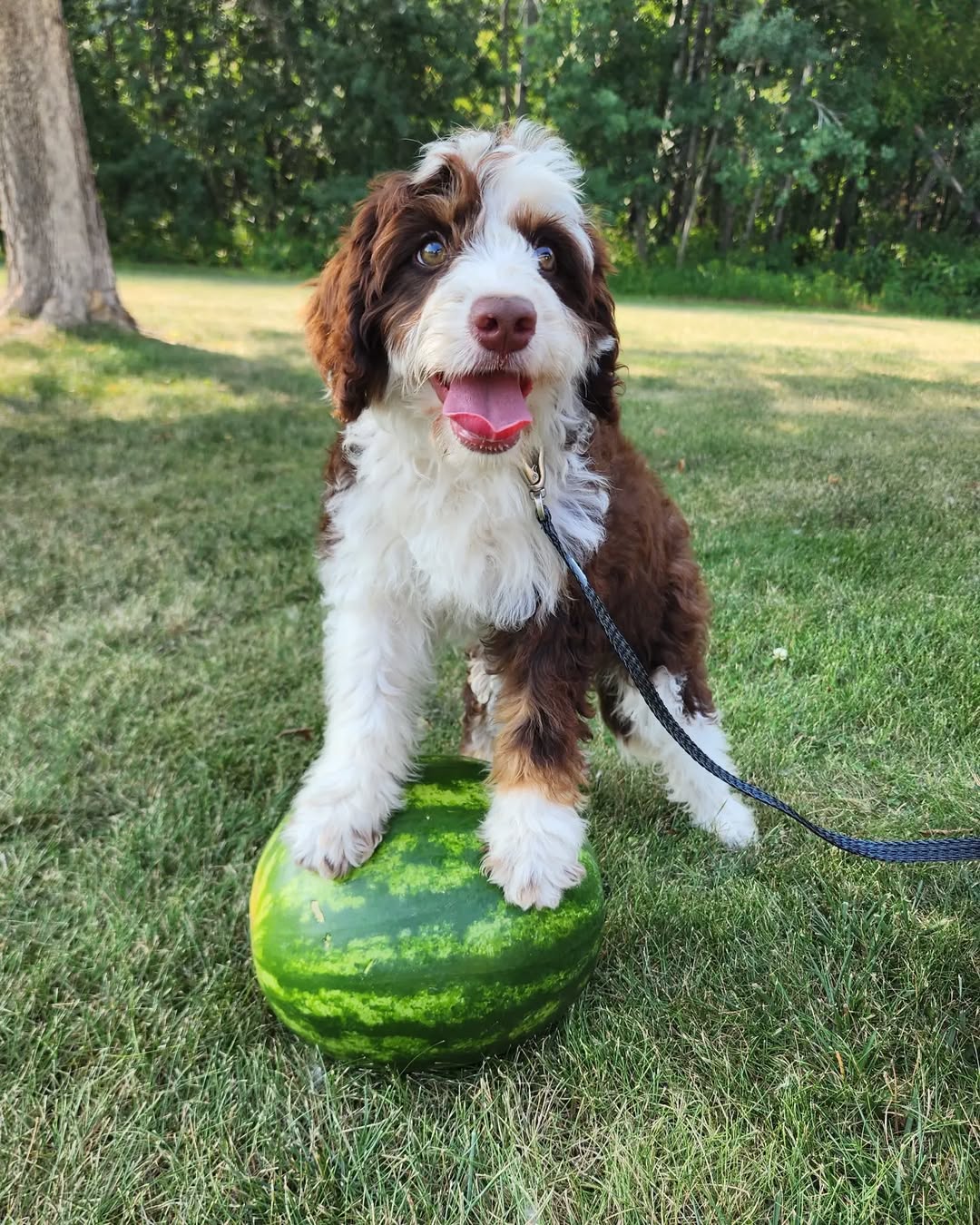 Watermelon is a sensitive, sweet soul who is looking for a home “WITH KIDS please”. She’s crate/potty-trained, recently updated shots, fully vetted with gen-tested parents. 20-25 Ibs+- adult weight, 9 weeks old, F1 Bernedooodle. Watermelon LIKES: All kids, all dogs, adults she knows, toys, PLAYING, zooming, treats (and then more treats), CUDDLING, and learning new tricks.